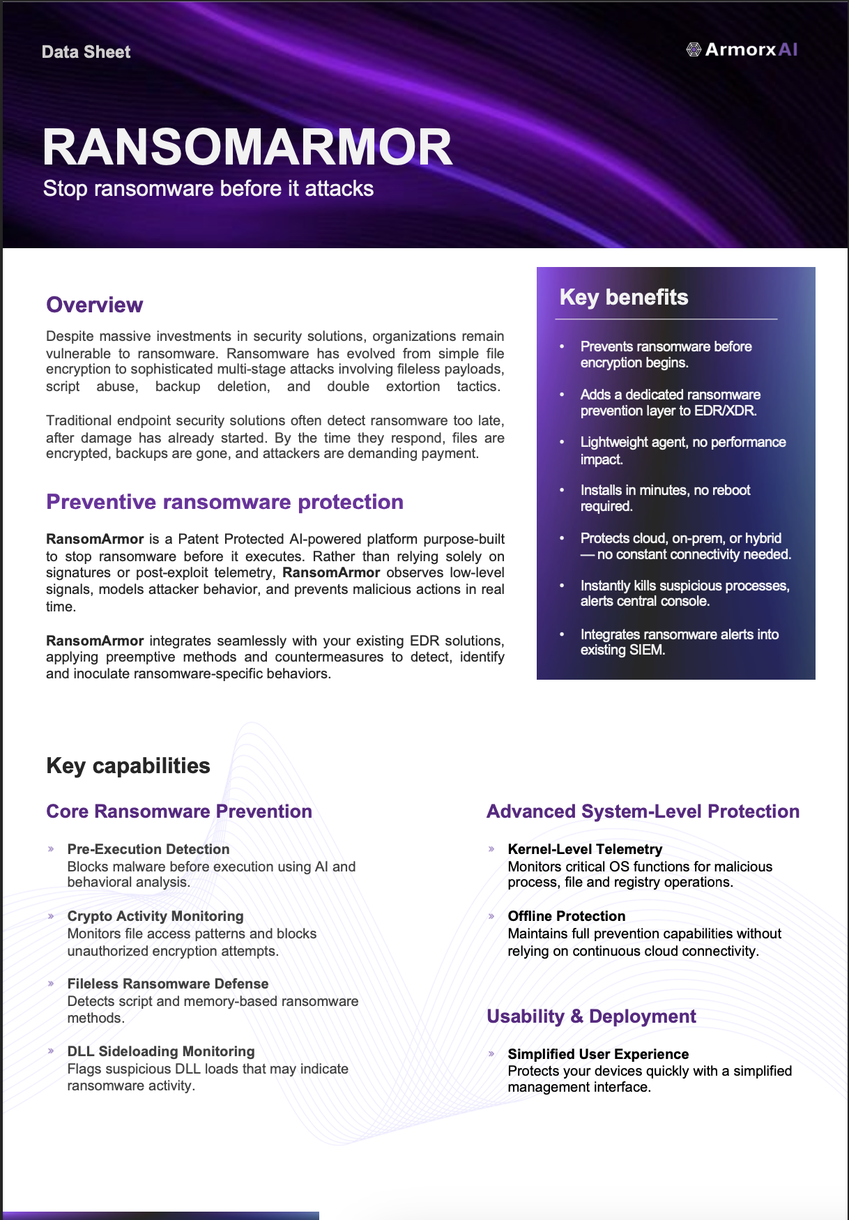 RansomArmor Datasheet: Preemptive Ransomware Protection